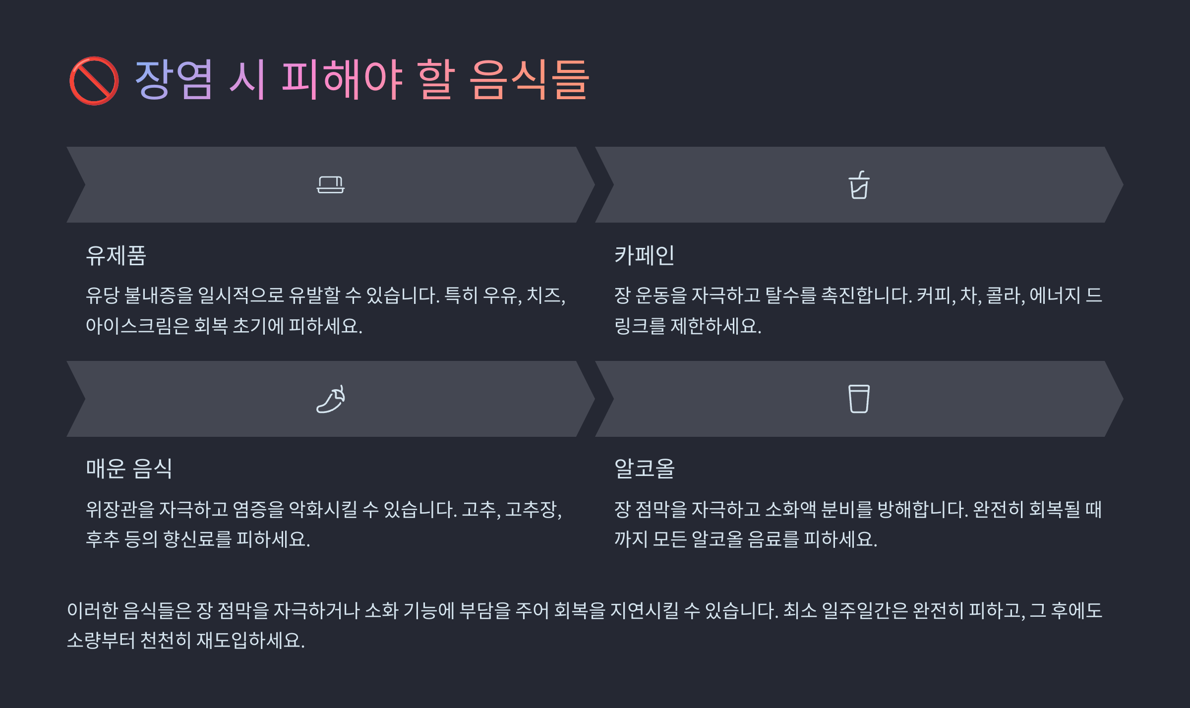 ⚠️ 장염 시 금지 음식 리스트