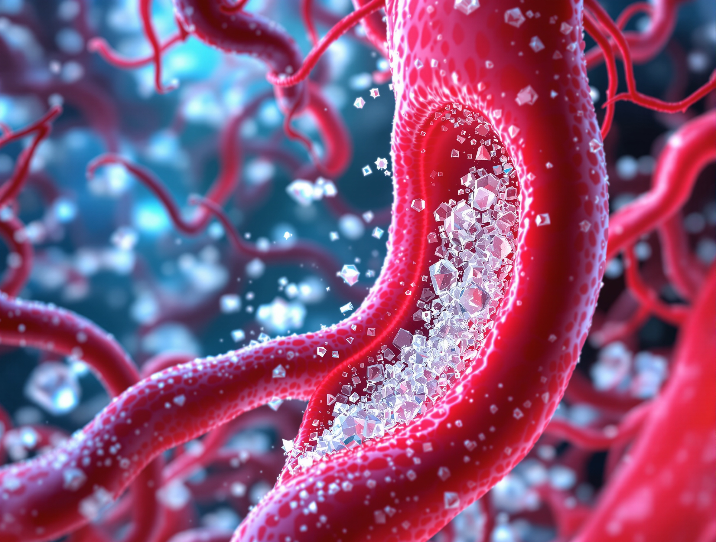 당뇨약을 먹지 않으면 가장 먼저 일어나는 변화는 혈액 속에 포도당이 넘쳐나는 고혈당 상태가 지속되는 것입니다. 인슐린이 제 기능을 하지 못하거나 부족한 상태에서 약물이라는 지원군마저 끊기면 우리가 섭취한 음식물은 에너지로 쓰이지 못하고 혈관을 타고 떠돌게 됩니다. 이때 과도한 포도당은 뾰족한 설탕 결정체처럼 변해 혈관 내벽을 긁고 상처를 내기 시작합니다.