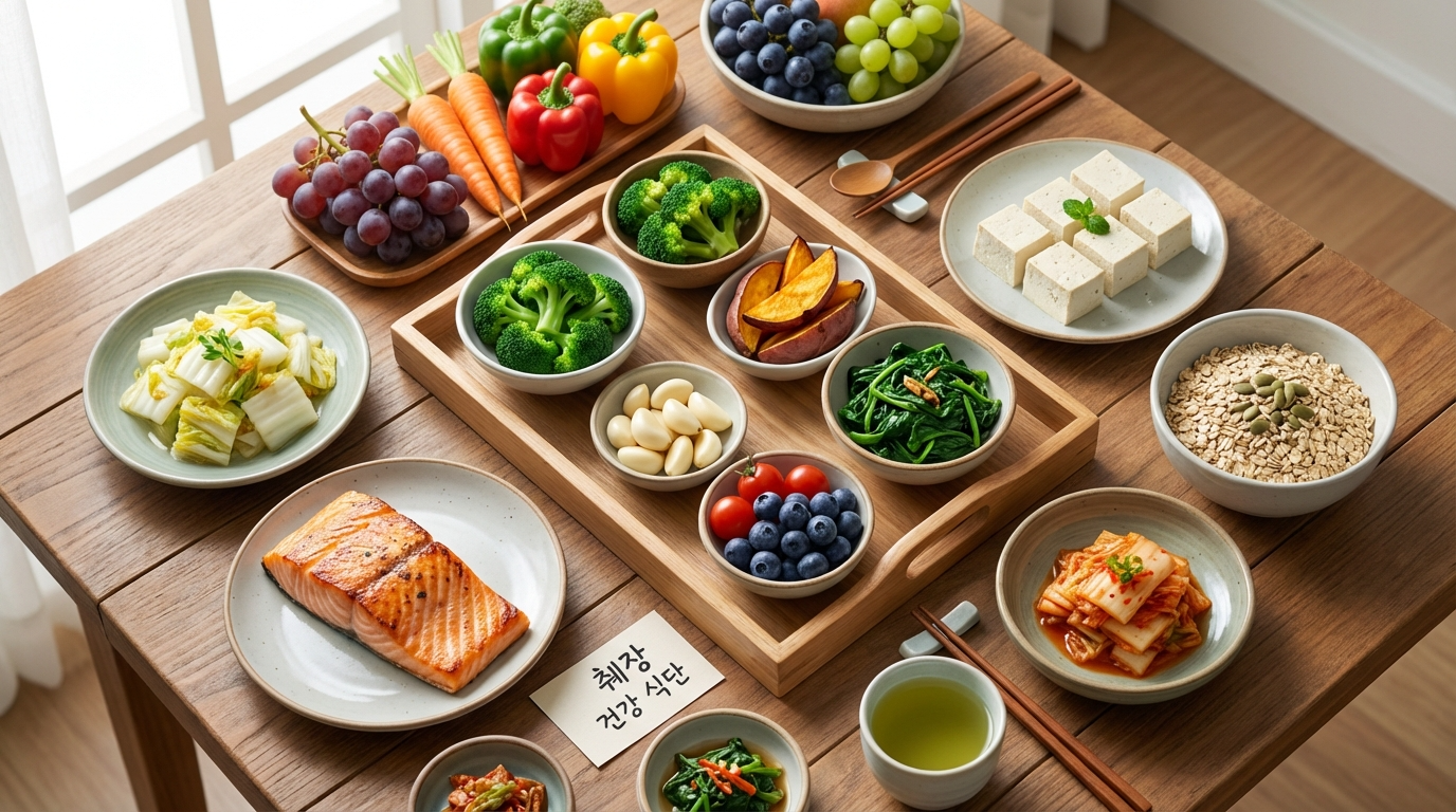 | 고구마 | 혈당 조절, 장 기능 개선 | 찌거나 구워서 섭취 |