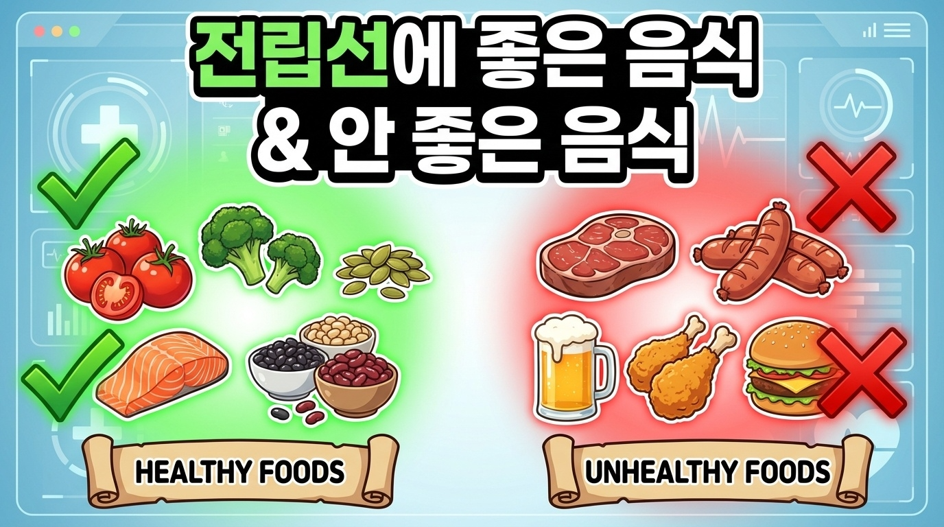 전립선 건강이 걱정되시나요? 🩺 중년 남성이라면 반드시 알아야 할 전립선에 좋은 음식과 피해야 할 음식을 정리해 드립니다. 토마토, 브로콜리, 호박씨 등 전립선 건강에 도움이 되는 식품부터 적색육, 가공식품, 술처럼 전립선에 해로운 음식까지 한눈에 확인하세요. 올바른 식습관과 생활습관으로 전립선비대증과 전립선암을 예방할 수 있습니다.