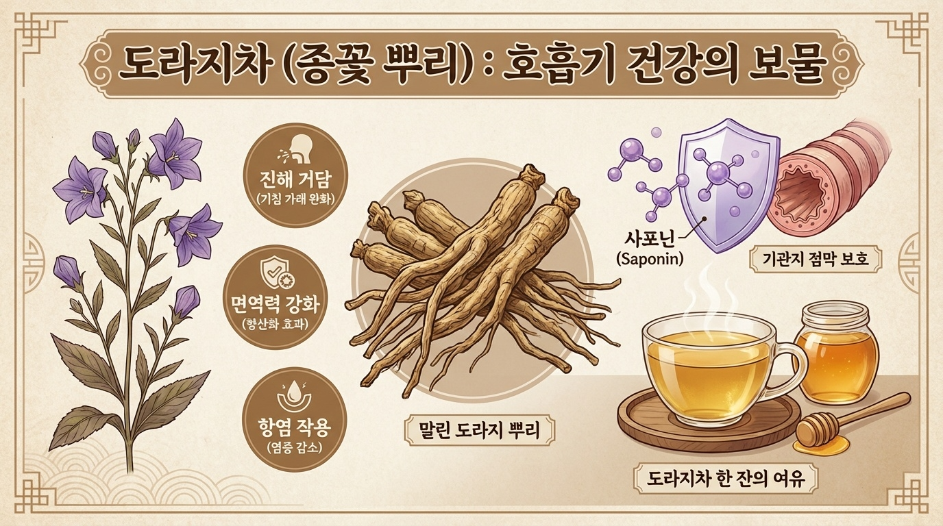 도라지차는 제가 마른기침 때문에 고생할 때 가장 먼저 효과를 본 차예요. 한방에서는 예로부터 길경이라고 불리며 기관지 질환 치료에 널리 사용되어 왔는데, 현대 과학적으로도 그 효능이 입증되고 있더라고요.