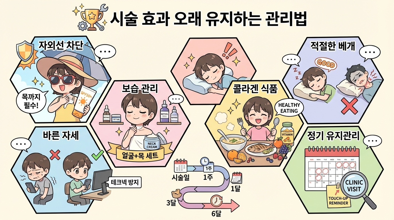 아무리 좋은 시술을 받아도 사후 관리를 소홀히 하면 효과가 금방 사라집니다. 시술 효과를 오래 유지하기 위한 관리법을 알려드릴게요. ✨