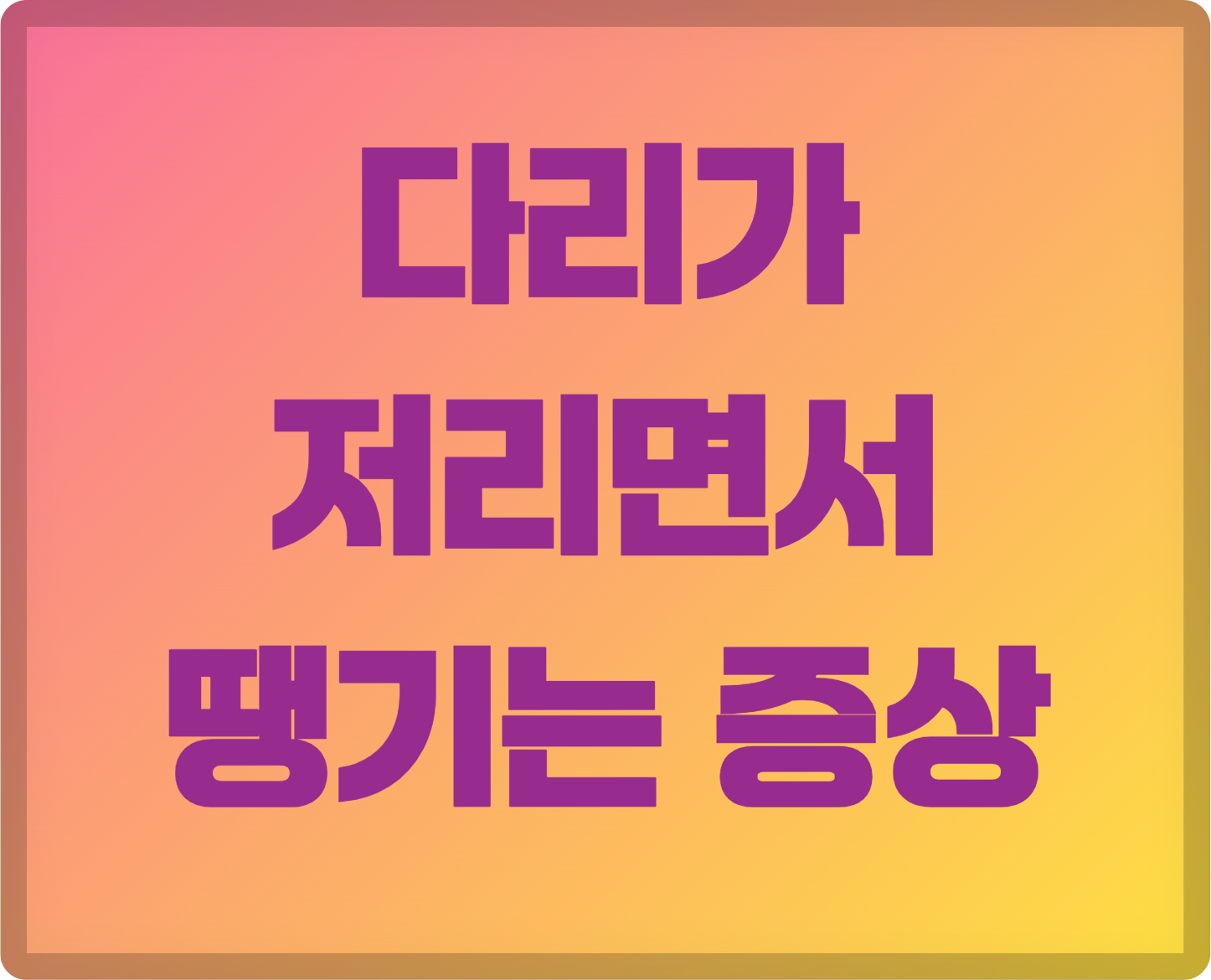 면책 조항 (Disclaimer) 이 블로그에서 제공되는 정보는 일반적인 건강 정보 및 교육적 목적을 위해서만 작성되었습니다. 이는 전문적인 의학적 조언, 진단 또는 치료를 대체할 수 없습니다. 다리가 저리거나 땡기는 증상이 지속되거나 심각한 경우, 반드시 자격을 갖춘 의료 전문가(의사)와 상담하십시오. 본 정보를 바탕으로 한 개인의 결정에 대해 작성자는 어떠한 법적 책임도 지지 않습니다.
